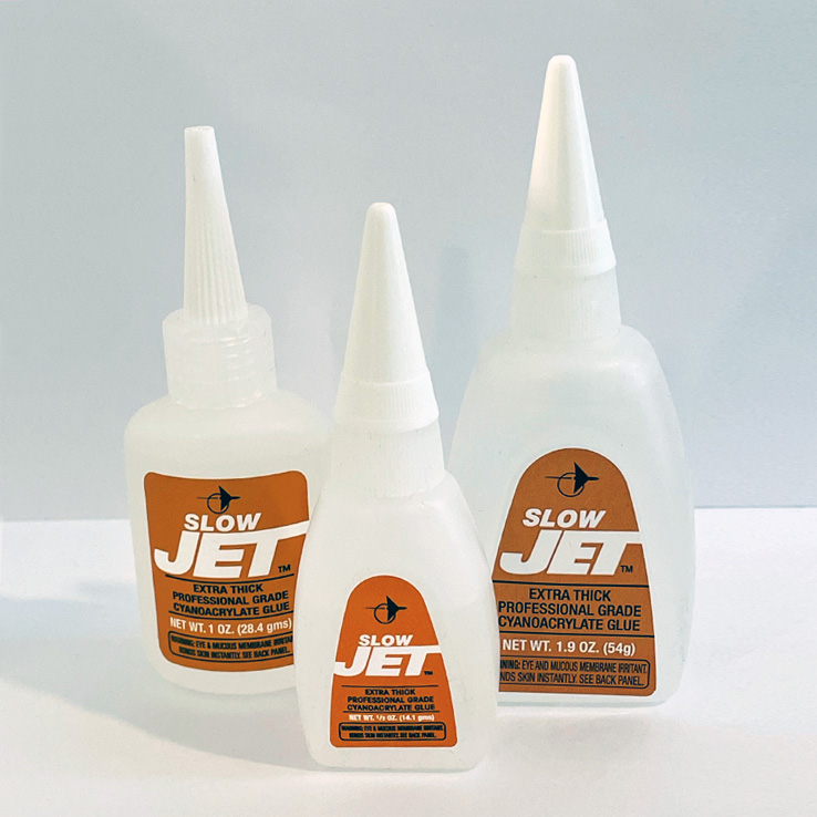 The “thickest” version, SLOW JETTM, provides maximum gap-filling, extra strength for laminations and high-stress areas, and allows a few extra seconds for repositioning. 1-2 minute set time may be hastened with JET SETTM accelerator.
